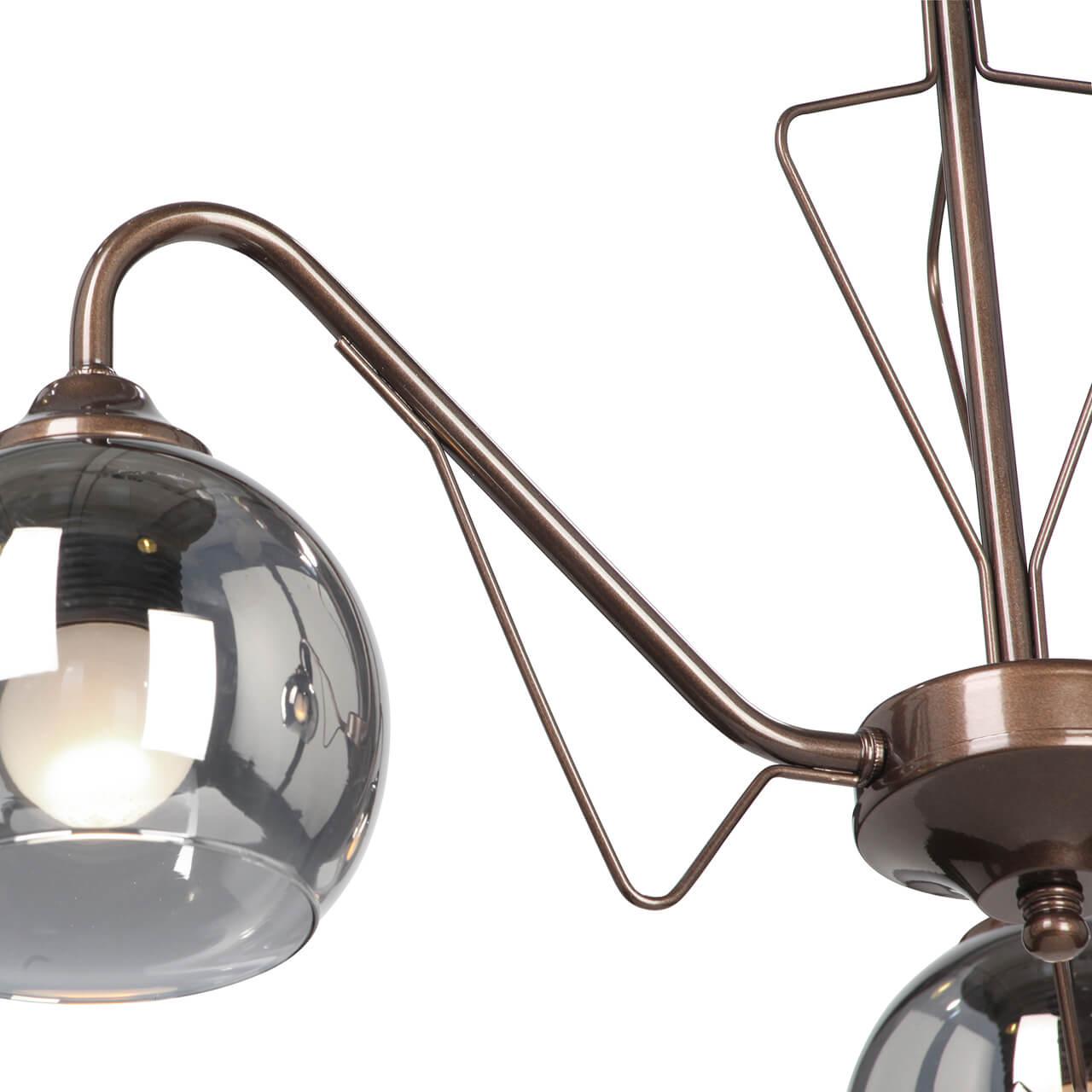 Основание люстры выполнено из металла в коричневом цвете, что придает изделию прочность и долговечность. Материалы, использованные в изготовлении, относятся к металлическим, что гарантирует надежность конструкции.