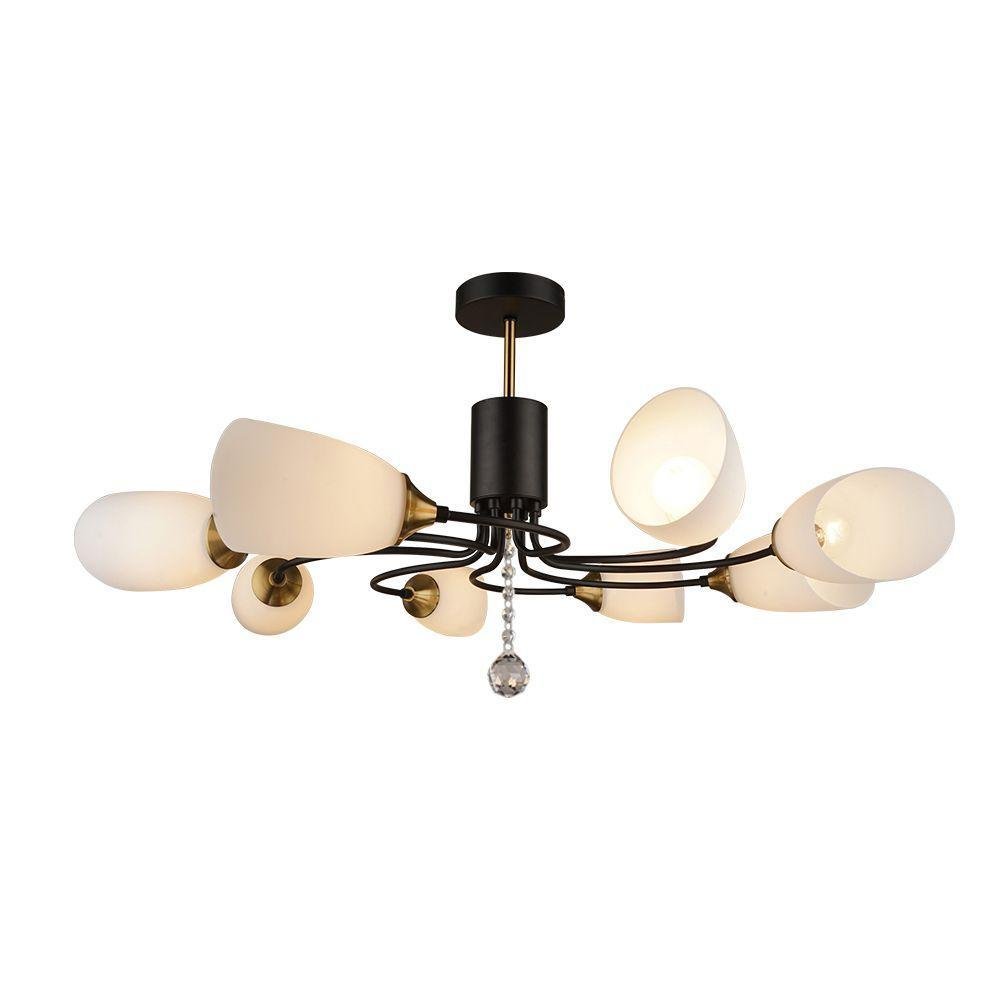 Потолочная люстра Wedo Light Дэвена 66122.01.37.08 - это элегантное и стильное освещение для спальни в стиле арт-деко. Изготовленная в России, данная люстра имеет высокое качество и привлекательный дизайн.Этот светильник оснащен восемью лампами с цоколем E27 и общей мощностью 480 Вт, что обеспечивает достаточное освещение помещения. Высота люстры составляет 450 мм, диаметр - 830 мм. Плафон и абажур выполнены из стекла белого цвета, что придает освещению мягкий и приятный оттенок.