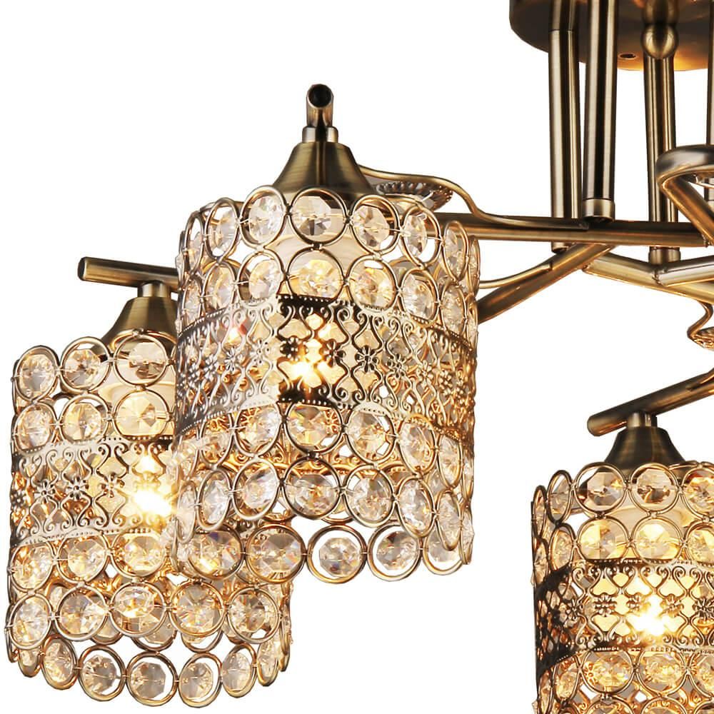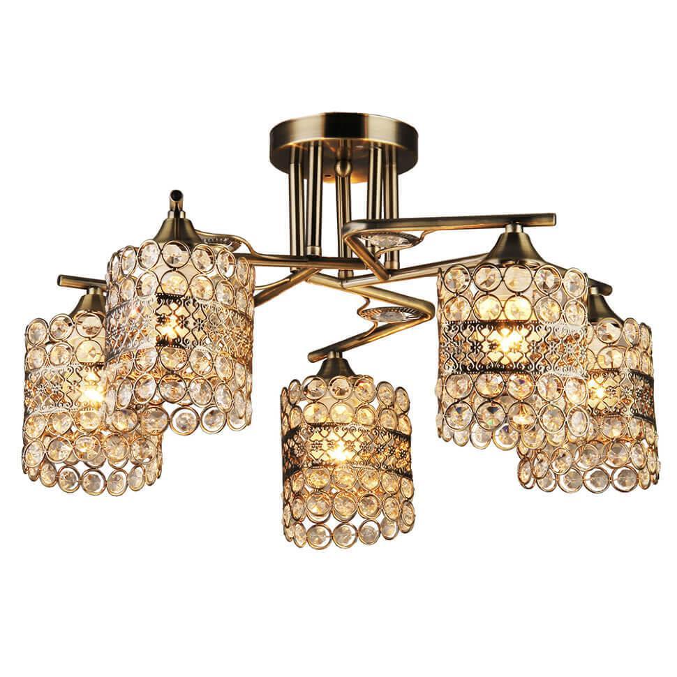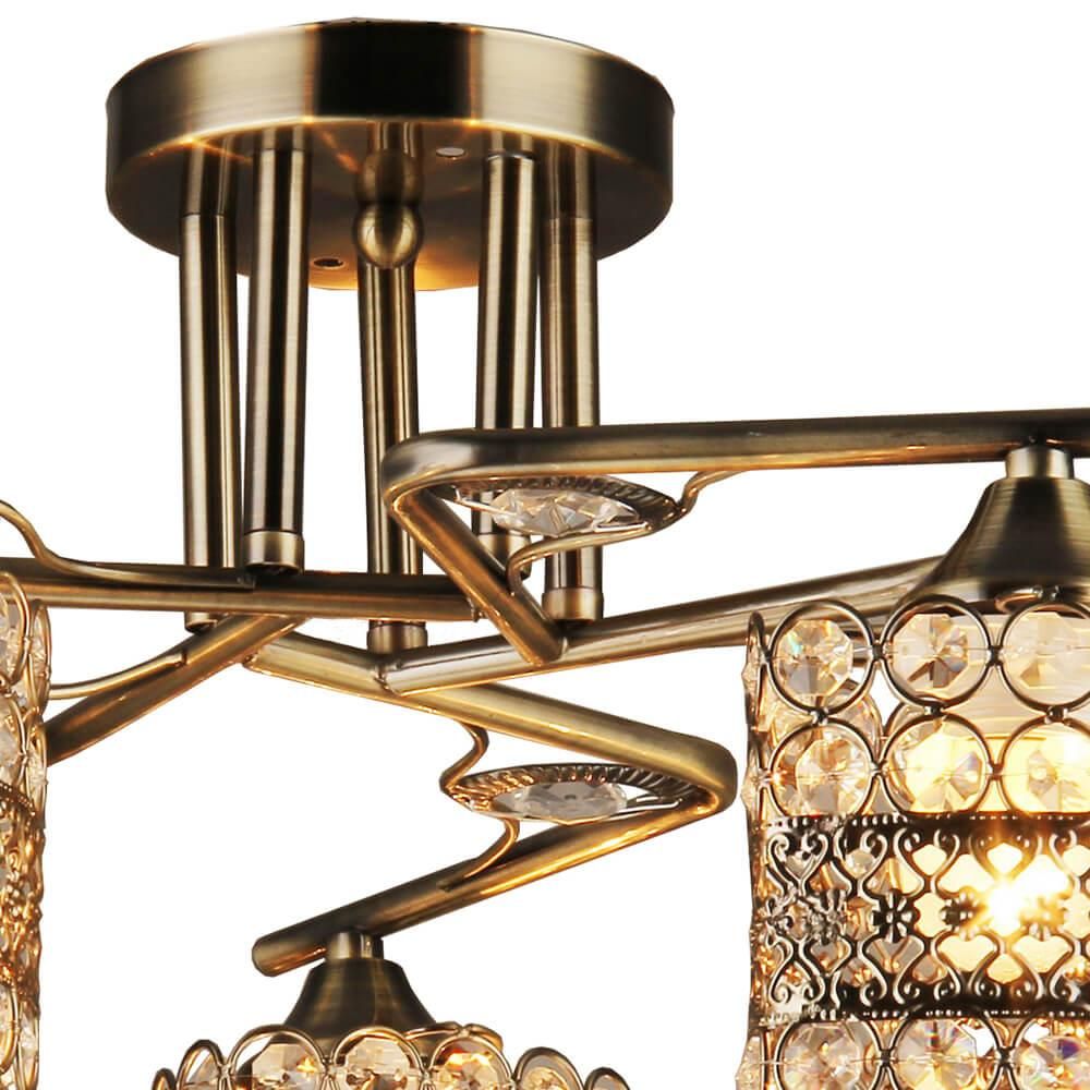 Стиль данной люстры можно охарактеризовать как арт-деко, что придает ей особую изысканность и утонченность. Цвет античной бронзы основания и плафона создает элегантный и роскошный вид. Диаметр плафона составляет 520 мм, а высота - 270 мм, что позволяет установить данную люстру на потолок с легкостью.
