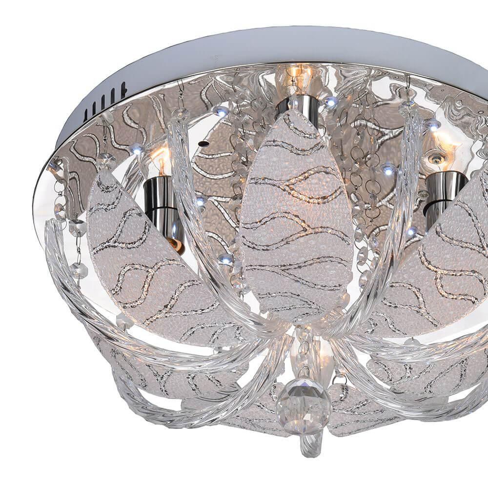 Светильник оснащен цоколем E14 и предназначен для использования ламп накаливания мощностью до 60 Вт каждая. Общая мощность светильника составляет 240 Вт, что обеспечивает достаточное освещение помещения. Диаметр люстры составляет 400 мм, а высота - 220 мм.