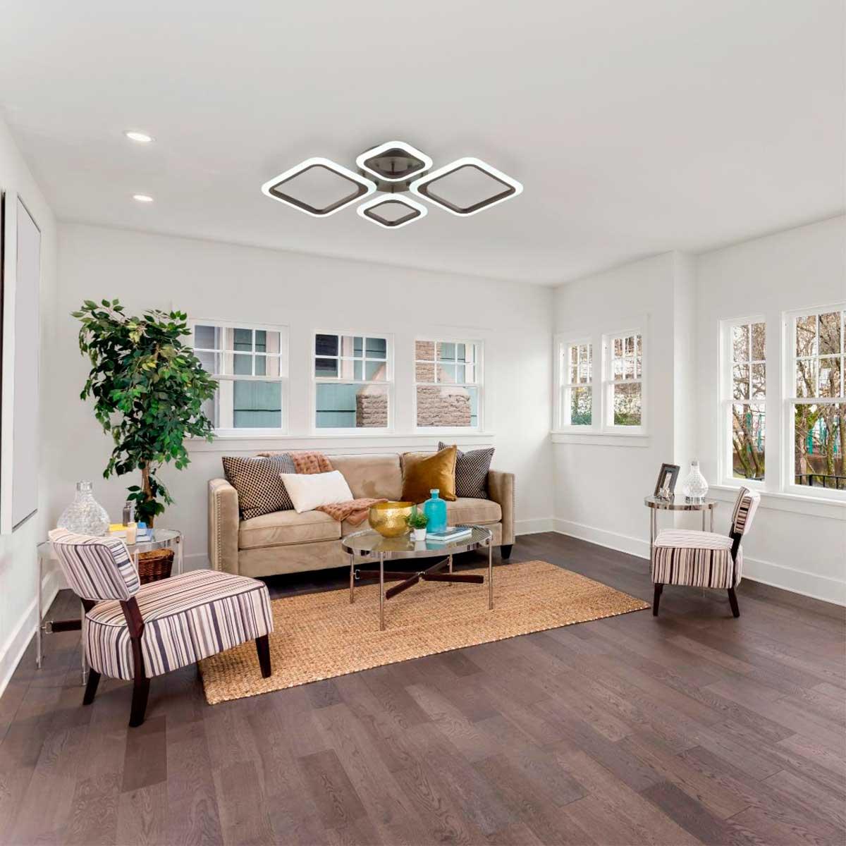 Потолочная светодиодная люстра Lumion Ledio Kami 4521/72CL - это стильное и современное освещение для кухни, произведенное в Италии. Люстра имеет общую мощность 72 Вт и мощность лампы 18 Вт, что обеспечивает яркое и эффективное освещение помещения.Изготовлена из высококачественных материалов - акрила и металла, что обеспечивает долгий срок службы изделия. Плафон в форме квадрата выполнен в белом цвете, а основание в коричневом, что придает люстре элегантный и сдержанный вид.
