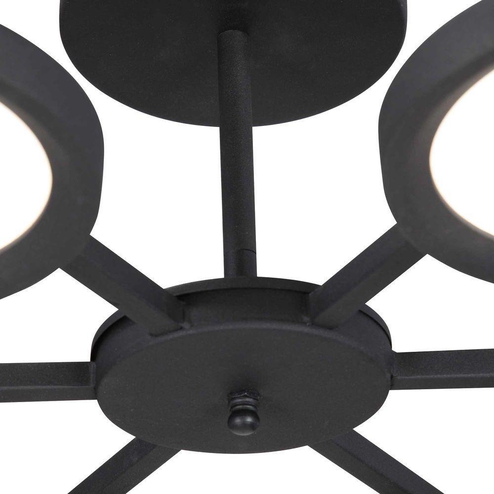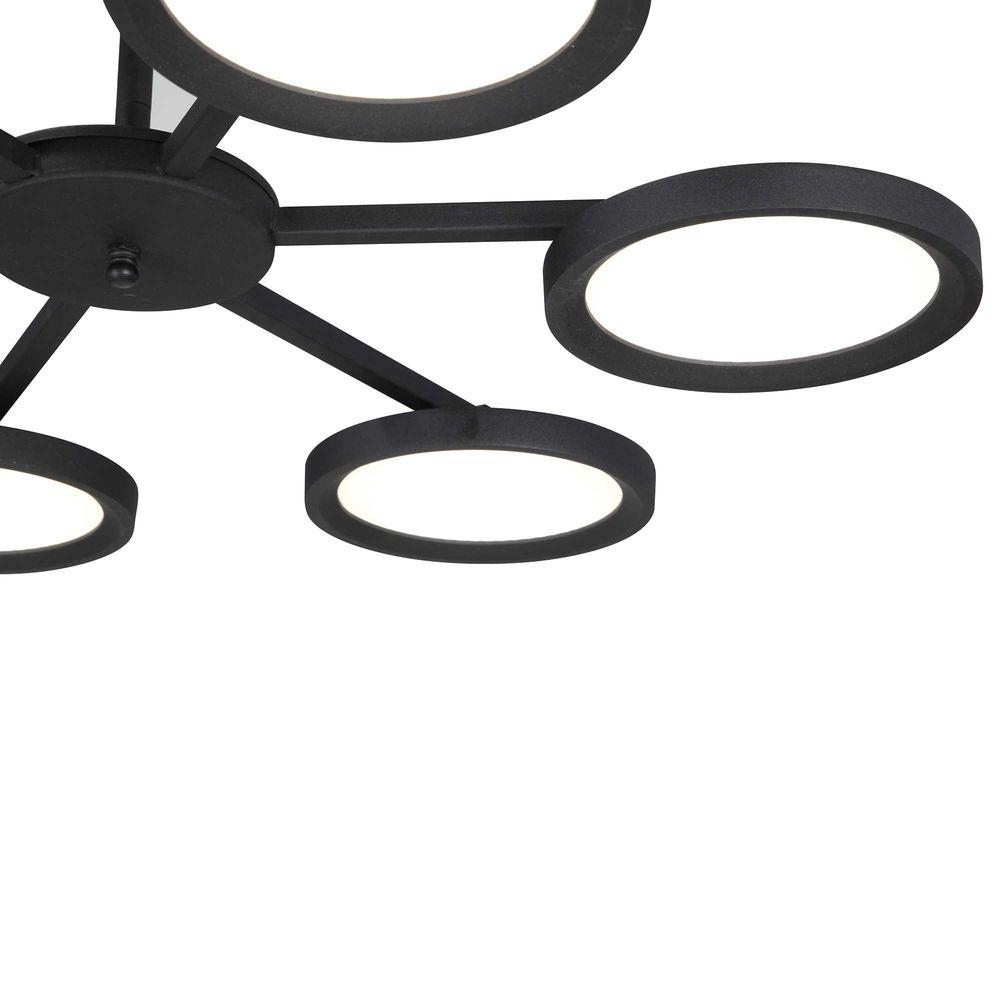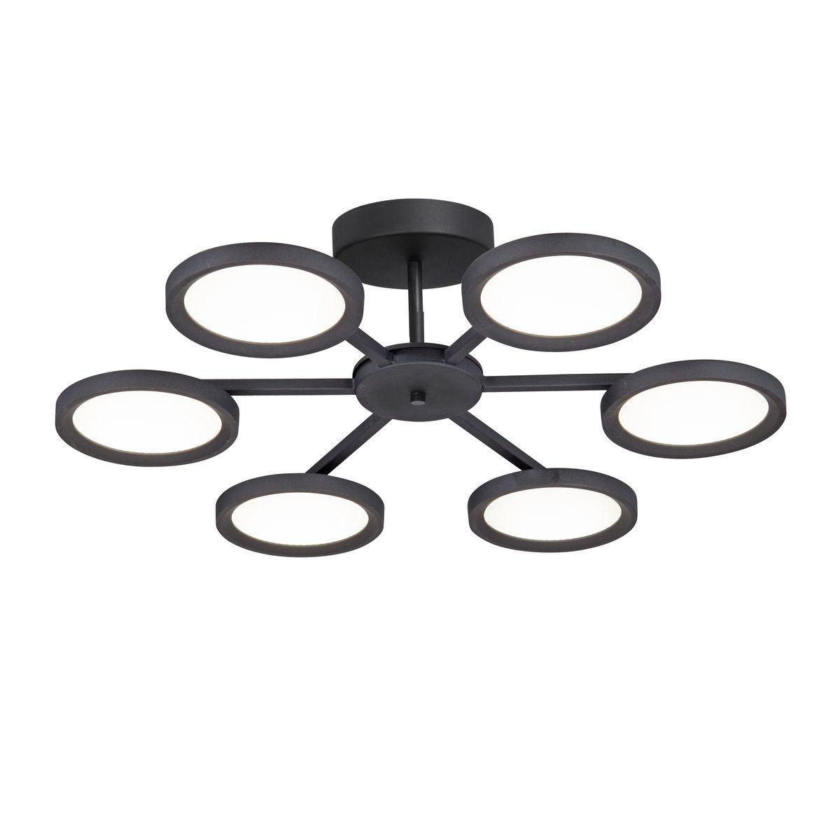 Плафон и абажур изготовлены из пластика черного цвета, что придает люстре современный и стильный вид. Основание из металла также выполнено в черном цвете, что создает единый и гармоничный дизайн изделия.