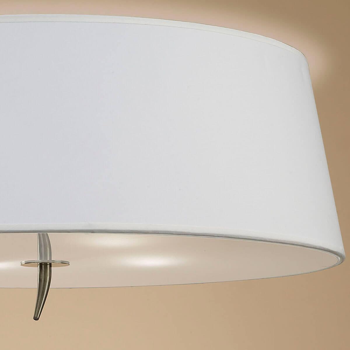 Потолочный светильник Mantra Ninette Antique Bras 1929 - это изысканное и функциональное освещение для спальни, созданное ведущим испанским брендом Mantra. Светильник из коллекции Ninette имеет дизайнерский стиль и отличается высоким качеством исполнения.Этот потолочный светильник оснащен четырьмя энергосберегающими лампочками с цоколем E27 и общей мощностью 80 Вт. Плафон изготовлен из ткани белого цвета, а абажур имеет кремовый оттенок, что придает освещению мягкость и уют. Диаметр светильника составляет 600 мм, а высота - 270 мм.