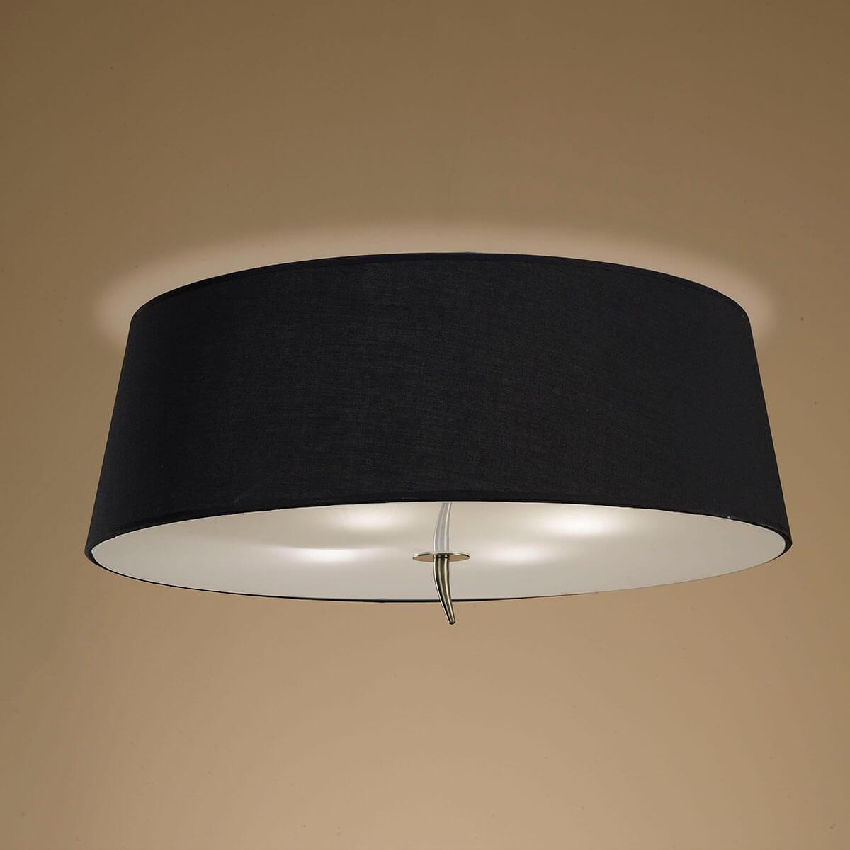 Потолочный светильник Mantra Ninette Satin Nickel 1919 - это изысканное и функциональное освещение для спальни в стиле арт-деко. Произведен в Испании с соблюдением высоких стандартов качества, данный светильник обладает гарантией производителя на 5 лет.Светильник оснащен четырьмя энергосберегающими лампочками с цоколем E27 и общей мощностью 80 Вт. Плафон из черной ткани имеет конусную форму и диаметр 600 мм, что создает приятное и мягкое освещение в комнате. Основание из металла с хромированным покрытием придает светильнику элегантный вид.