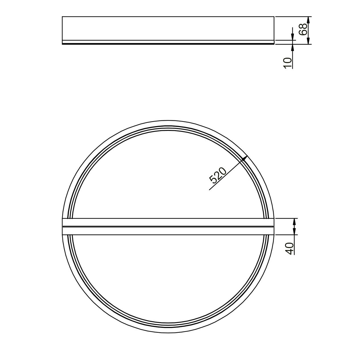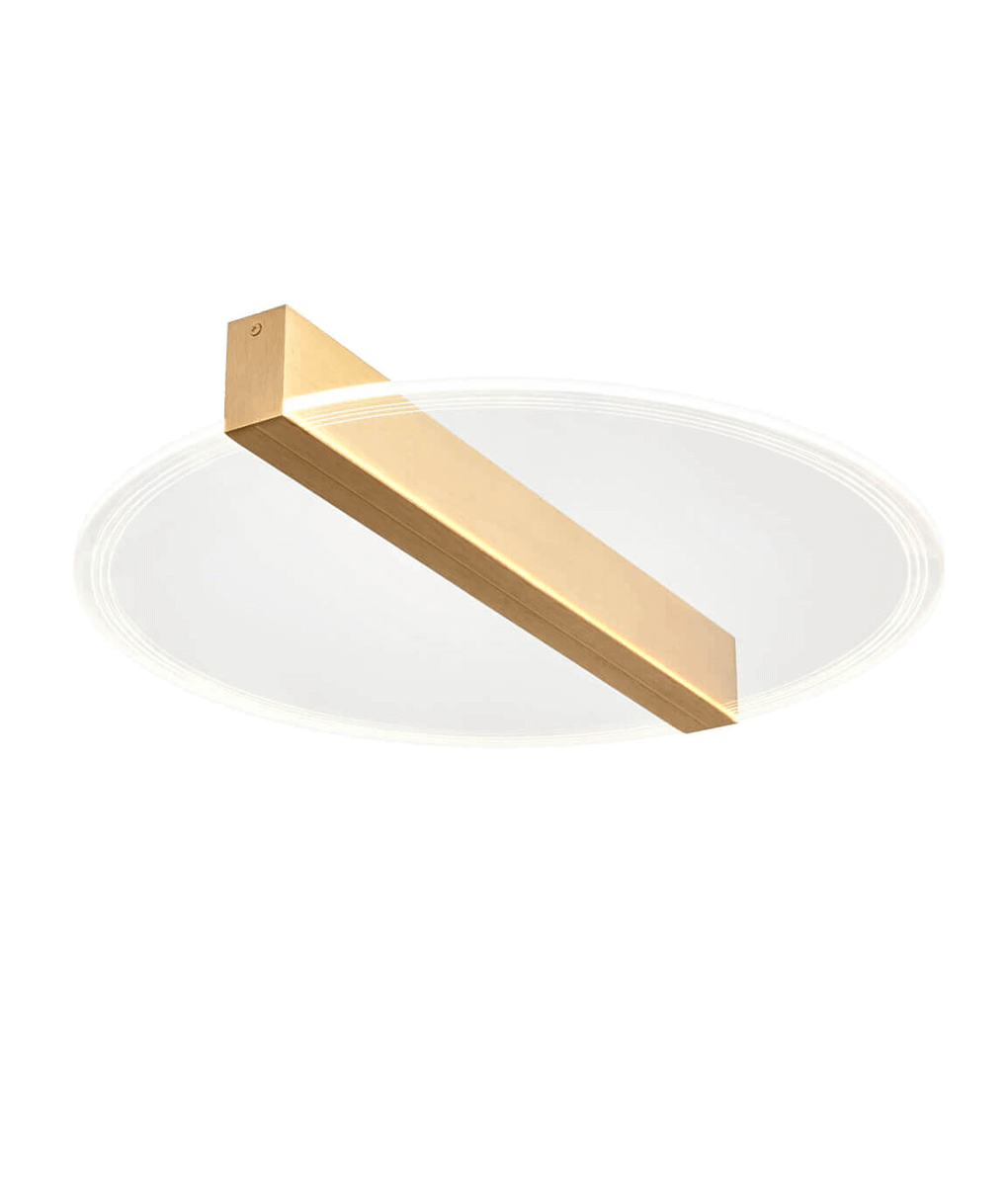 Основание светильника выполнено из алюминия с золотистым оттенком, что придает ему изысканный вид. Степень защиты IP20 гарантирует безопасность использования внутри помещения. Диаметр плафона составляет 520 мм, а высота - 68 мм.