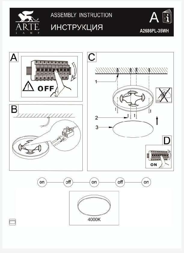 Потолочный светодиодный светильник Arte Lamp Arena A2686PL-35WH