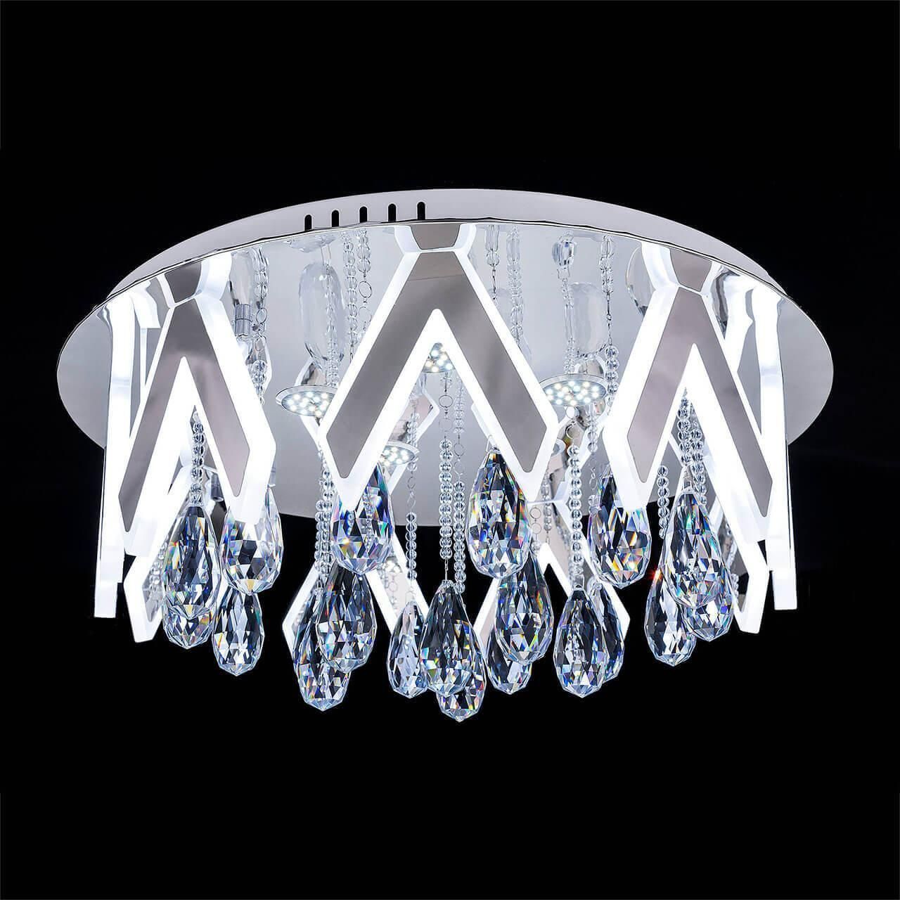 Светильник изготовлен из металла с отделкой в хромированном цвете, что придает ему современный и стильный вид. Диаметр плафона составляет 600 мм, а высота - 260 мм.