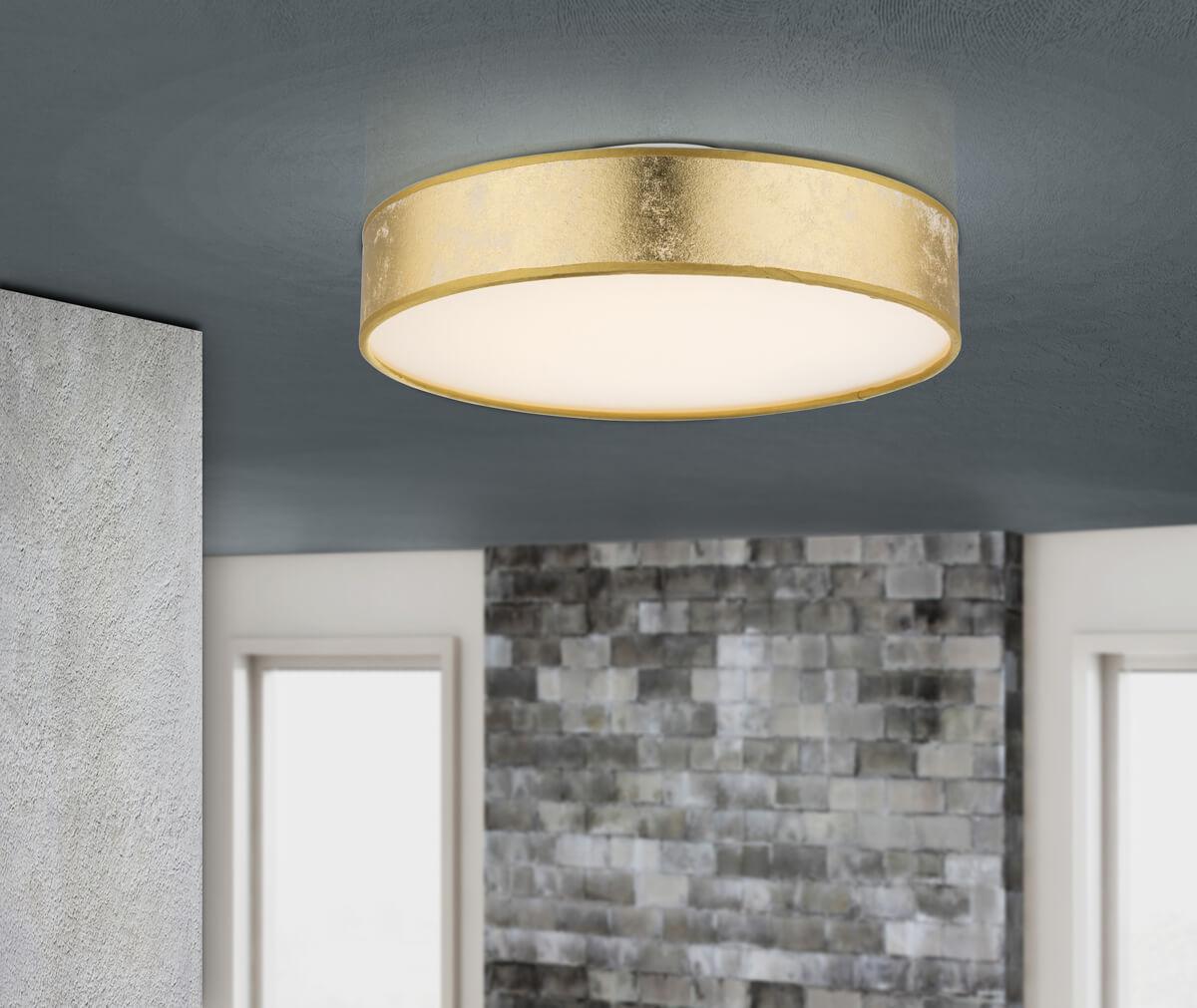 Плафон светильника изготовлен из акрила и имеет золотой цвет, что придает ему изысканный и элегантный вид. Основание выполнено из металла и окрашено в белый цвет, что создает контраст и придает светильнику дополнительную изюминку.