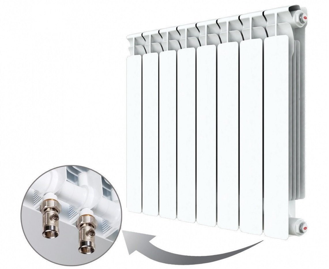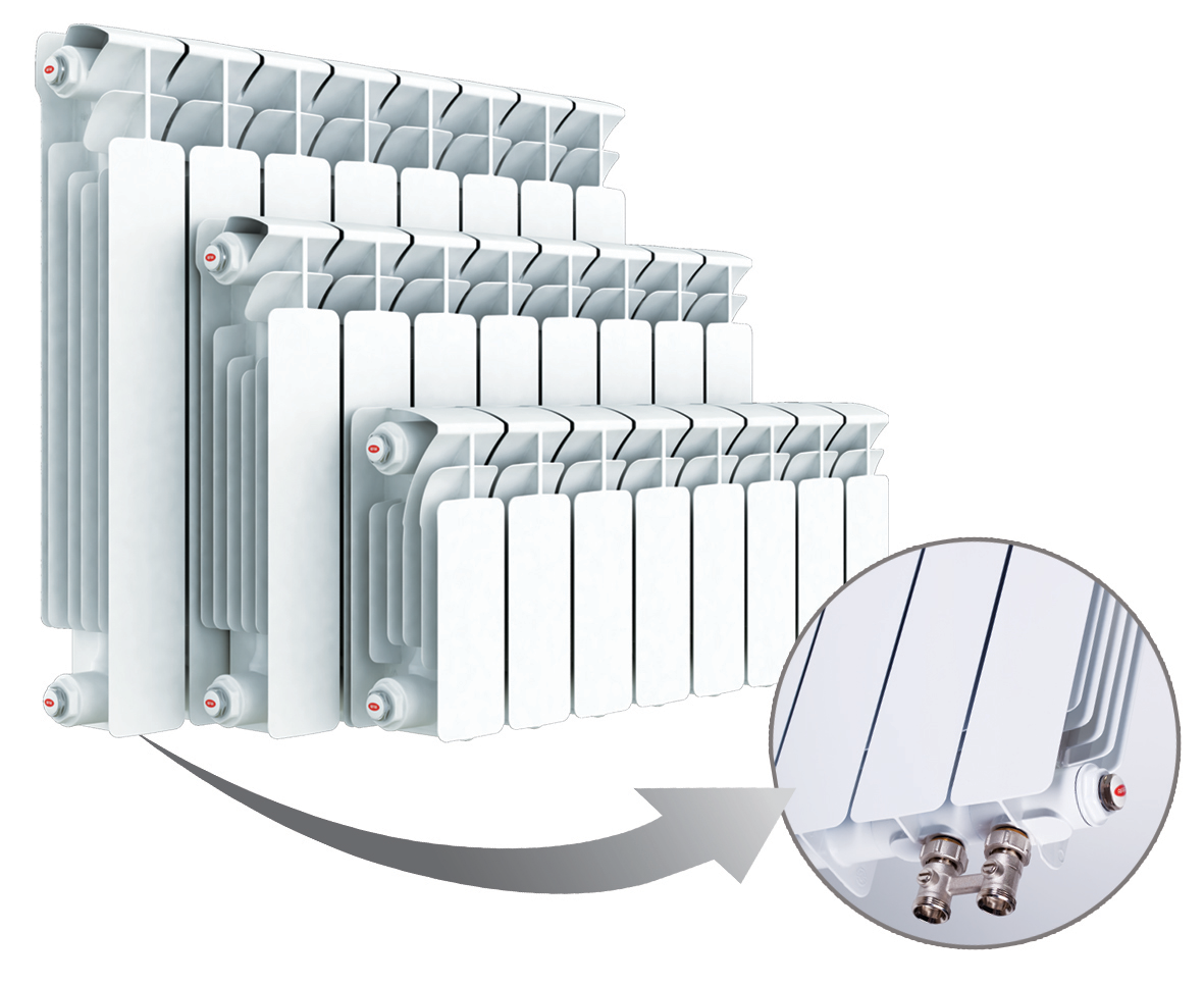 Биметаллические радиаторы RIFAR Alp Ventil имеют возможность нижнего подключения, комплектуются термостатическим клапаном, верхним и нижним распределителями потока в коллекторах, воздухоспускным клапаном (кран Маевского), переходниками, заглушками, редукционными ниппелями.