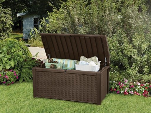 Сундук из пластика под искусственный ротанг Borneo, предназначен для хранения различных видов аксессуаров, необходимых для садовых работ. В нем успешно поместятся, например, подручные инструменты. Чулан выполнен из высококачественных материалов, устойчивых к разрушающему воздействию погодных факторов. Дополнительным преимуществом, облегчающим использование, является вспомогательный механизм открывания крышки. Надежно выполненный чулан также может быть использован в качестве места для сиденья для 2-х человек. Объем 416 л