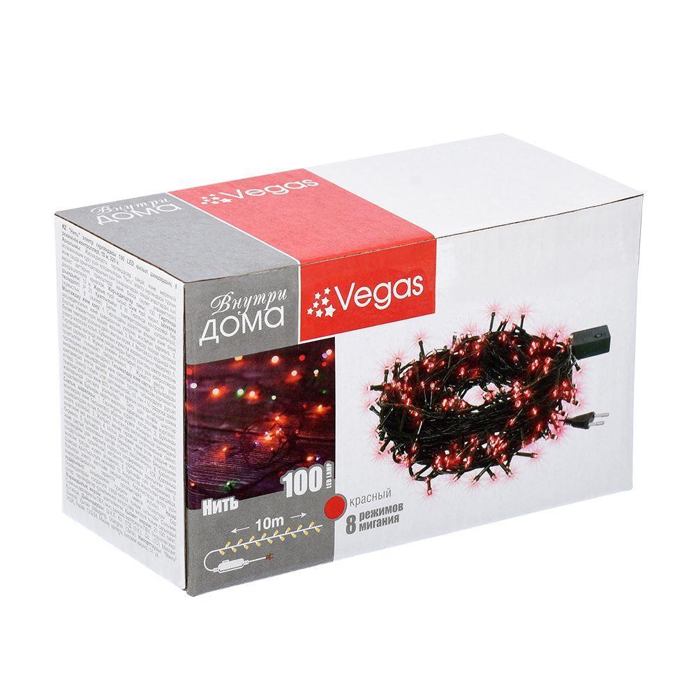 Светодиодная гирлянда Vegas Нить 220V красная 8 режимов 55065