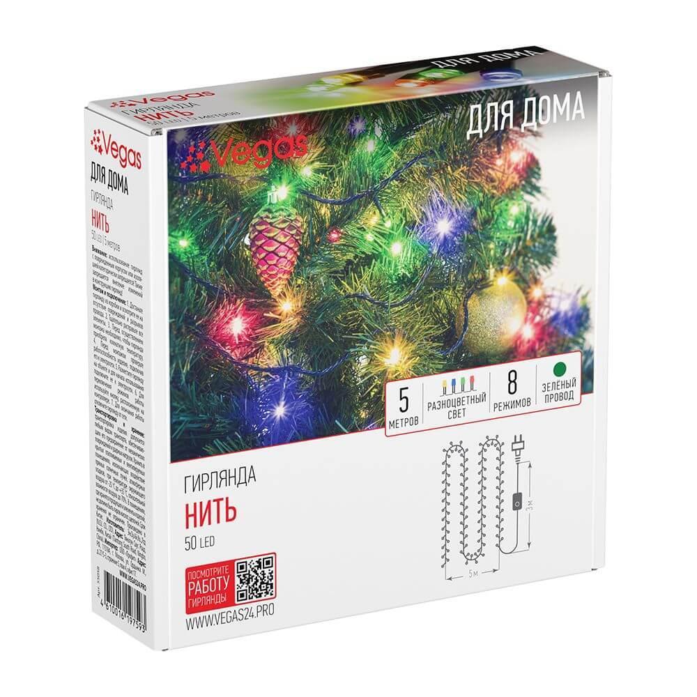Светодиодная гирлянда Vegas Нить 220V разноцветная 8 режимов 55058