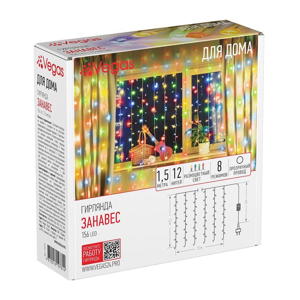 Светодиодная гирлянда Vegas Занавес 220V разноцветная 8 режимов 55076