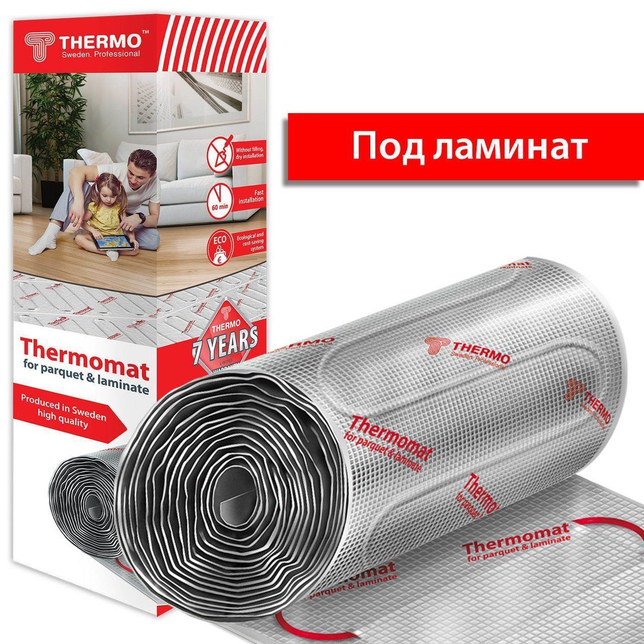 Thermomat TVK-LP-1 имеет площадь один м2, поэтому предназначен для укладки в небольших помещениях. Данная серия нагревающихся кабелей отличается от другой тем, что была изготовлена специально для укладки под другие напольные покрытия, как, например, ламинат или паркет. Изготовлен этот теплый мат также по другой технологии, на основе армированной фольги. Установить теплый пол под покрытие очень легко самостоятельно.