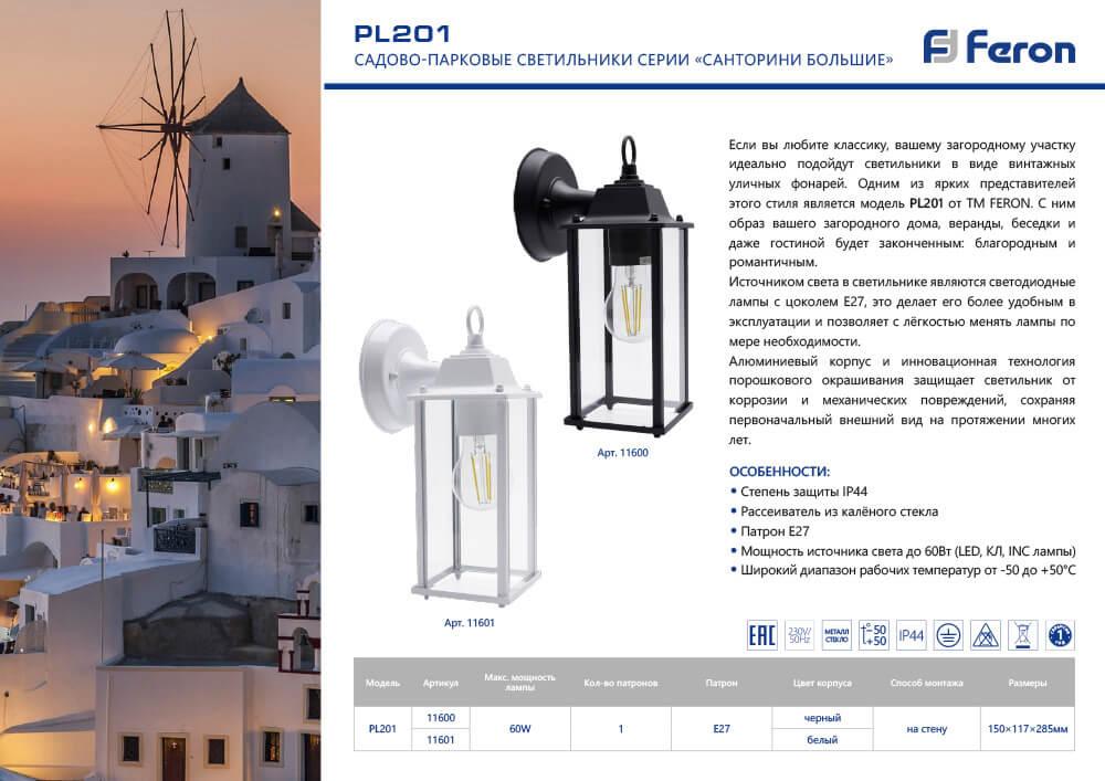 Уличный настенный светильник Feron Санторини PL201 11601 в стиле кантри, имеет гарантию производителя 12 месяцев. Материал арматуры стекло, материал плафонов стекло. Основной цвет белый, цвет плафонов прозрачный.Сертификаты